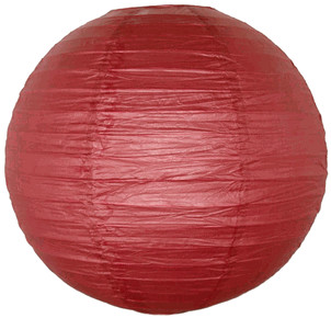 Round paper lanterns with an even wire ribbing. Lantern is held open with a wire expander. Lanterns are hand made and may have slight variations in colors from size to size.